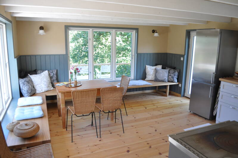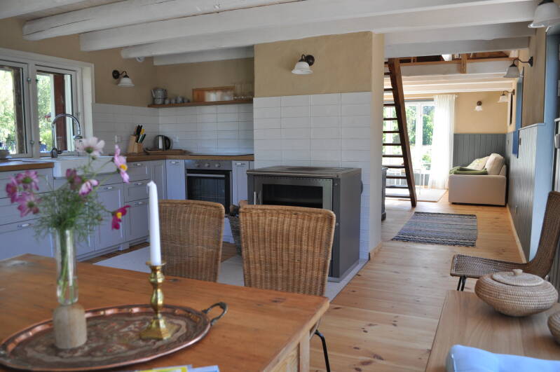 Det helt ekologiskt renoverade fritidshuset har en fantastisk utsikt över det vackra flodlandskapet och ligger i utkanten av ett orört skogs- och sjölandskap där den sällsynta lodjuret fortfarande lever. Småland är ett unikt kulturlandskap, hemvist för Astrid Lindgren, och erbjuder en mängd möjligheter som Östersjökusten, skärgården, Öland och otaliga bad sjöar. I omedelbar närhet (10 min) hittar våra gäster en stor älgpark, barnvänliga badsjöar och Natura 2000-området Emån.
